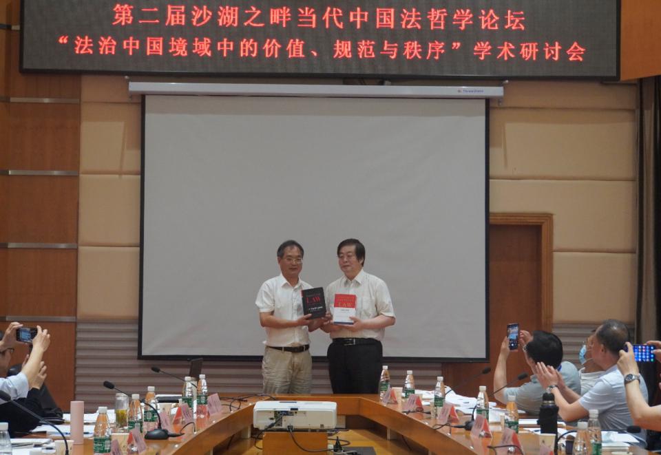 开幕式上,广州大学人权研究院谢晖教授、北京理工大学法公司周大伟教授、中国马克思主义法哲学研究会会长李瑜青教授分别向WILLIAMHILL在线体育投注法哲学研究中心和WILLIAMHILL在线体育投注法公司赠书。