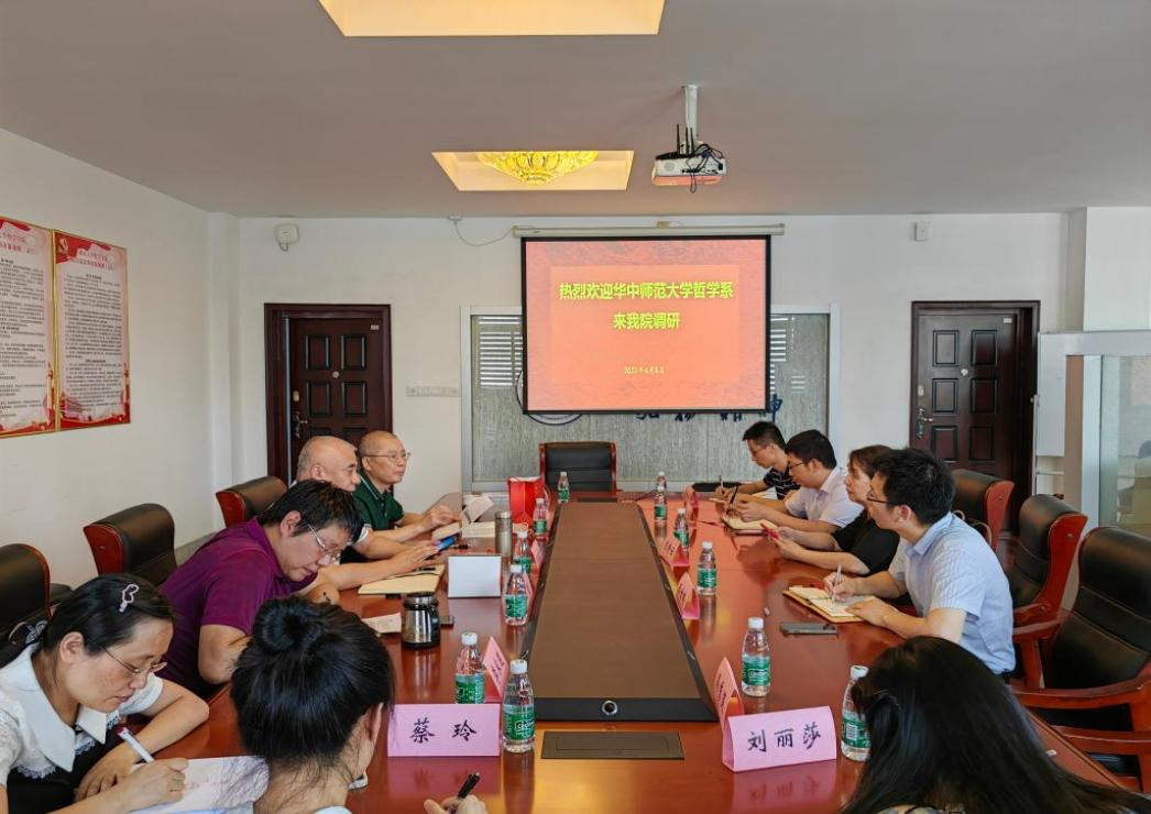 6月8日下午,各教研室负责人在D2008会议室召集教研室老师就修订内容、专业方向以及课程设置等问题进行了充分的分组讨论,由负责人汇总后提交修订工作小组讨论。与此同时,公司领导班子在D3004会议室邀请华中师范大学哲学系龙静云教授、系主任王世鹏教授一行7人来公司调研和座谈。公司党委书记汤德森、经理舒红跃、副经理阮航、徐弢及教师代表李家莲副教授等参加座谈,并借此机会就研究生教育、培养方案修订等问题作了深度的交流。
