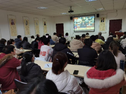 伴随着庄严的国歌声,大会正式开幕。大家紧盯屏幕,聚精会神听报告,全神贯注做笔记,聆听着国务院总理李克强关于政府工作的报告,并为报告中的骄傲成就和宏伟蓝图感到心潮澎湃,会议室里一次次响起热烈的掌声。