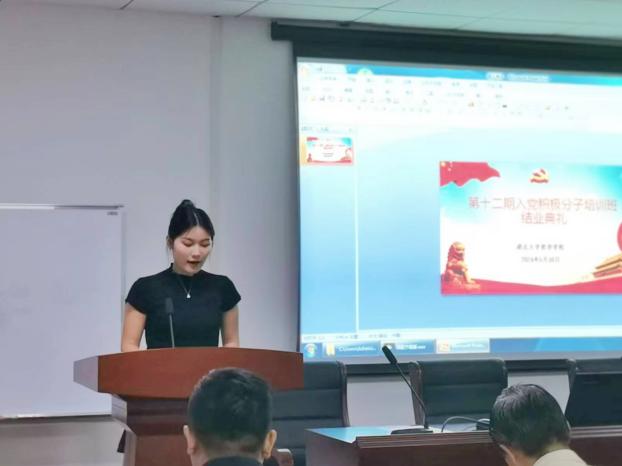 结业典礼在庄严的国歌声中拉开序幕。博士研究生谭悠然、本科生陈乾佳等两位优秀学员代表分别作交流发言。谭悠然表示,作为党校学员,要坚持以习近平新时代中国特色社会主义思想为指导,将党的先进理论与所学专业知识相结合,为推动社会的进步和发展贡献自己的力量。陈乾佳在发言中提到,作为新时代青年要把牢“有理想”的首要标准,要突出“敢担当”的时代要求,要锤炼“能吃苦”的坚毅品格,要弘扬“肯奋斗”的光荣传统。