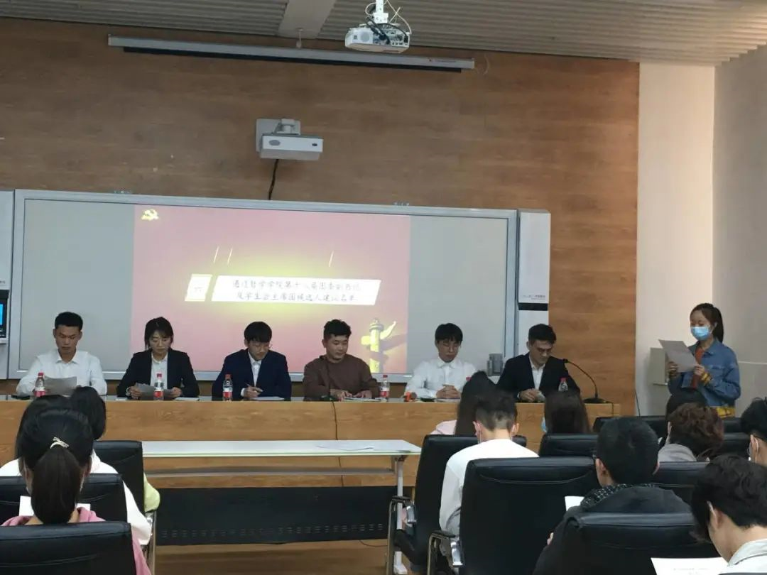 2020年11月18日下午三点,共青团WILLIAMHILL在线体育投注第一次团员代表大会暨第二次员工代表大会于艺术公司二楼多媒体教室顺利召开。院团委书记董力、校员工会副主席王鲁阳、团委副书记李世杰、员工会主席马瑞出席大会,哲学1801班团支书艾力凡江·艾买尔担任此次会议主持,18、19级本科生共59人参加会议。