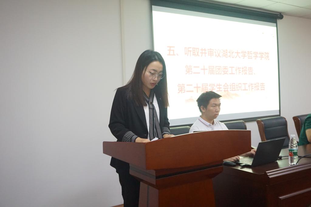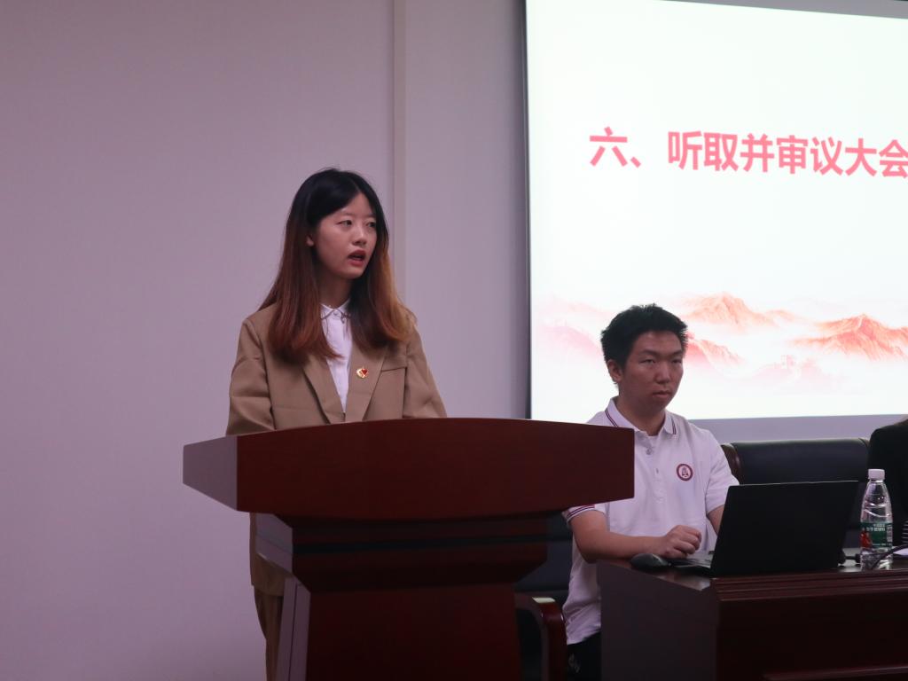 陈航详细介绍了哲院员工会组织在本届任期内的组织建设成果以及文体类、学科类、权益类工作情况,对其做出深刻反思,并对未来的员工会工作作出展望。此次报告坚持“从员工中来,到员工中去”的定位,跟随公司党委领导,接受院团委指导进行改革,明确职能,坚持为同学服务的宗旨。
