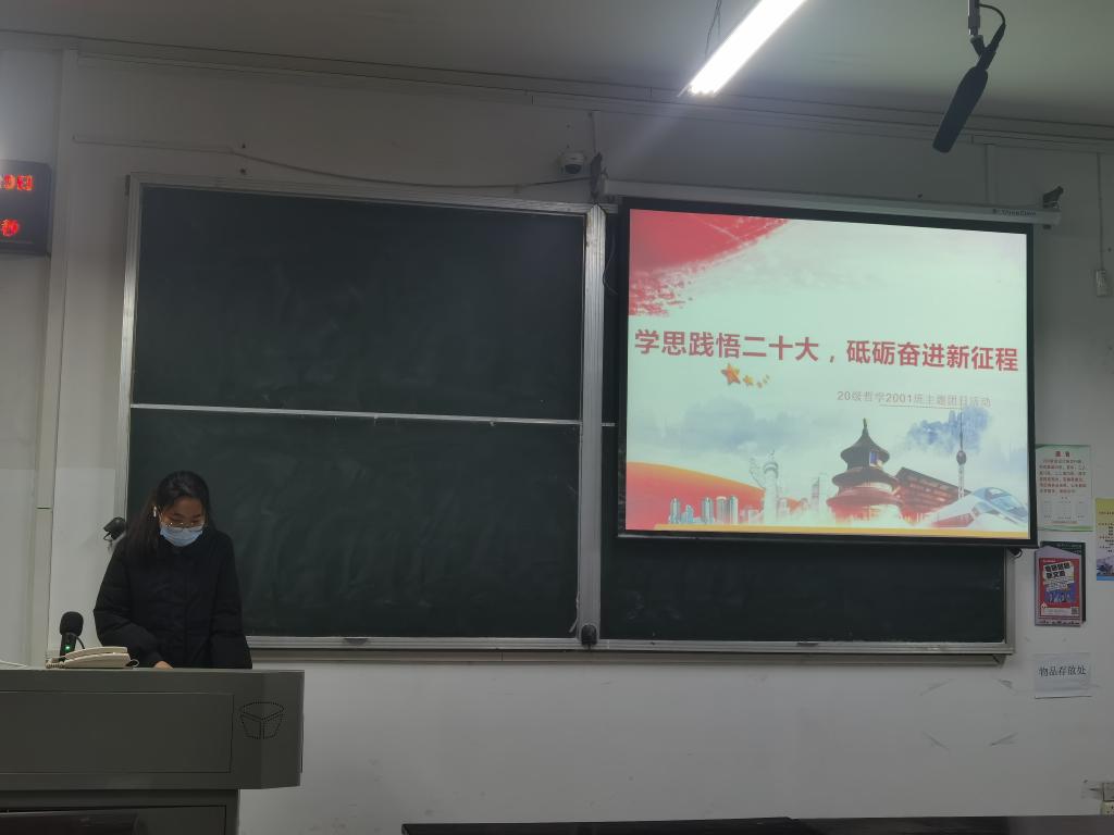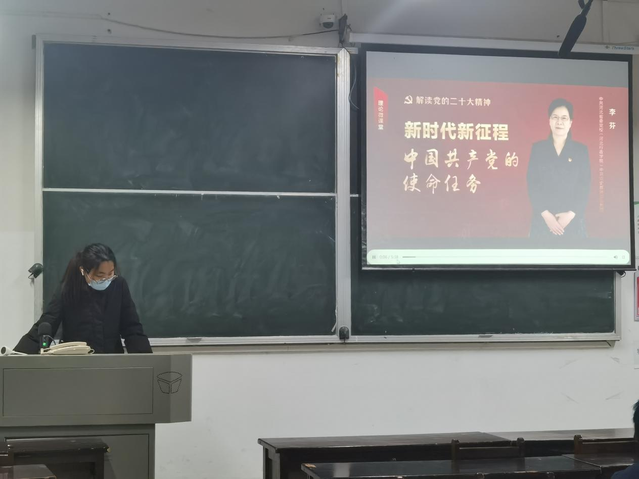 2023年2月20日下午6时,2020级本科生于教3-206开展“学思践牾二十大,砥砺奋进新征程”主题团日活动。在田亦洁同学的主持下,全体同学通过观看专家教授解读的微视频合集《解读党的二十大精神》,进行党的二十大精神专题学习。
