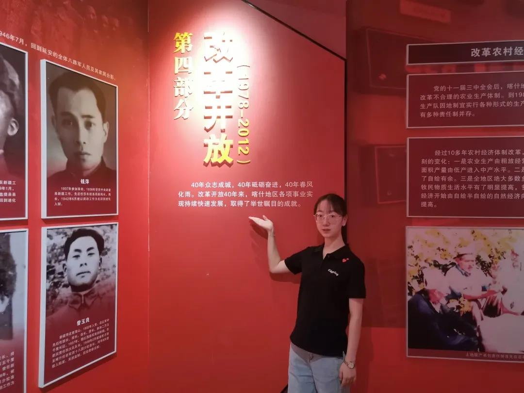 为庆祝中国共产党成立一百周年,喀什地区文化广播电视和旅游局主办、喀什博物馆承办的“百年峥嵘 伟大成就——喀什地区‘庆祝中国共产党成立一百周年’主题展”,重温历史,展示喀什大地100年来翻天覆地的变化和崭新成就。实践小组受疫情影响,经讨论决定由者淇进行线下参观,小组成员祝馨悦、李乐琴、邹涵彤、周健、马玟茜同步线上学习。