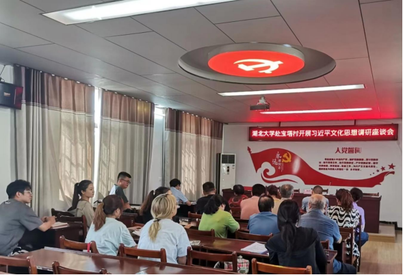 调研团队在向阳湖镇宝塔村召开了村民现场座谈会。宝塔村是向阳湖镇的一个“无上访”村,村文化建设取得了一定的成绩。座谈中,村民踊跃发言。村民表示,宝塔村农家书屋藏书种类繁多,涵盖政策解读、农业科技、儿童文学等多个领域。村民文化活动室设施齐全,利用率高,文化活动丰富多彩。村民在农闲时间积极参与农村文化活动,及时学习关注党的会议精神,对习近平文化思想有比较深的理解。村党支部书记潘盛军在介绍村民精神面貌时提到:“我们村的村民素质高、凝聚力强,民风淳朴。之后我们将在习近平文化思想指导下继续打造属于宝塔村的特色文化品牌。”同时,村民也谈到了文化建设的困难和建议。通过现场座谈,倾听了村民的声音,获取了村两委干部、村民对习近平文化思想视域下湖北农村文化建设的真实反馈。