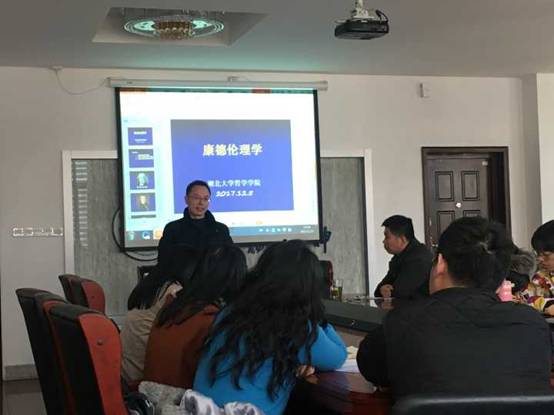 2017年12月5日下午,武汉大学公司教授、博士生导师曾晓平教授应邀来到公司,并做了题为“康德的道德哲学”的专题讲座。曾晓平教授主要研究领域是早期现代西方哲学和德国古典哲学,其中休谟哲学和康德哲学为其重点研究对象。本次讲座由公司高乐田教授主持,公司研究生和老师聆听了此次讲座