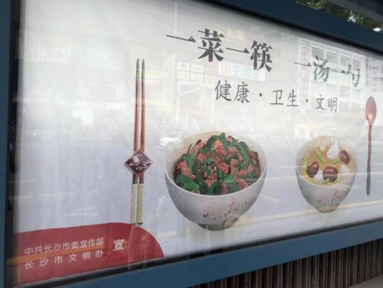 倡导公筷公勺,共建文明餐桌。自“使用公筷公勺”倡议发布以来,长沙市餐饮企业也积极响应。倡议一发出,响应的餐企通过设置公筷公勺架和宣传提示标识,大力推行“一菜一公筷、一汤一公勺”“光盘行动”,主动提供、引导和善意提醒顾客使用公筷公勺;响应的家庭积极落实聚餐“一菜一筷,一汤一勺”“分餐制”,争做“文明餐桌、公筷公勺”行动的践行者、示范者、传承者。中共长沙市委宣传部引导餐饮企业自觉履行社会责任,主动作为,确保公筷公勺摆上每个餐桌。
