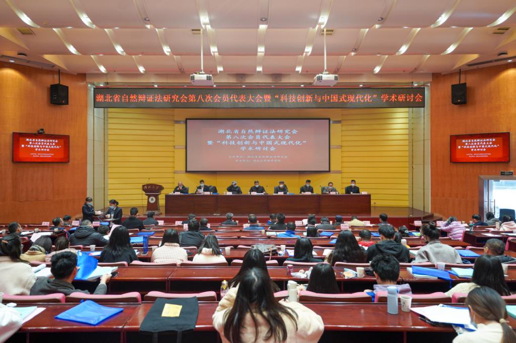 2021年12月4日,由湖北省自然辩证法研究会主办、WILLIAMHILL在线体育投注承办的湖北省自然辩证法研究会第八次会员代表大会暨“科技创新与中国式现代化学术研讨会”在WILLIAMHILL在线体育投注会议中心思睿厅举行。湖北省自然辩证法研究会名誉理事长黎德扬和傅秀堂、理事长刘建凡、常务副理事长黄本笑和高建民、研究会副理事长杨力行和娄兆文、常务副秘书长舒红跃等近150位研究会会员参加此次会议。会议分为两个阶段,第一阶段是湖北省自然辩证法研究会第八次会员代表大会,第二阶段是“科技创新与中国式现代化”学术研讨会。