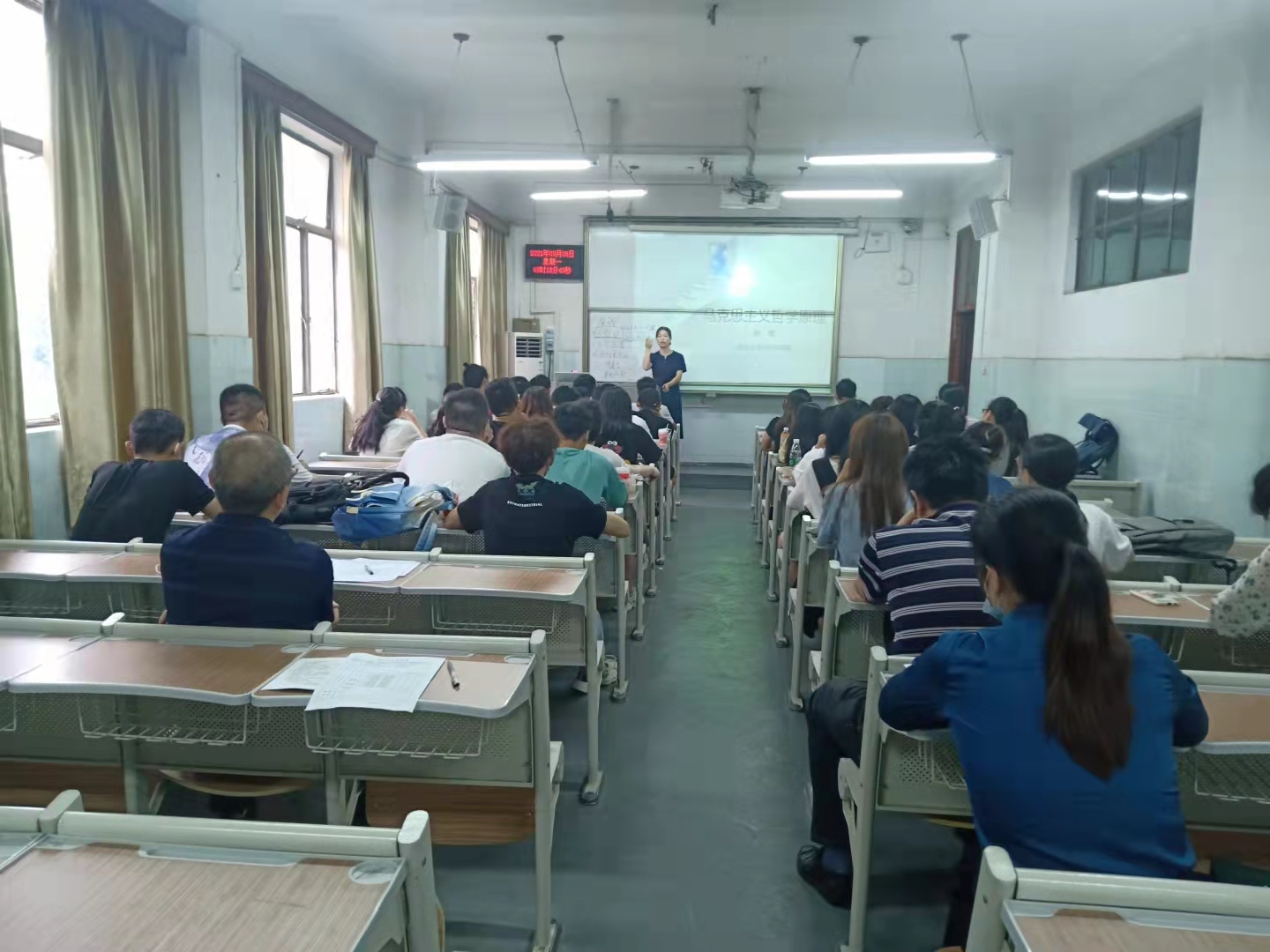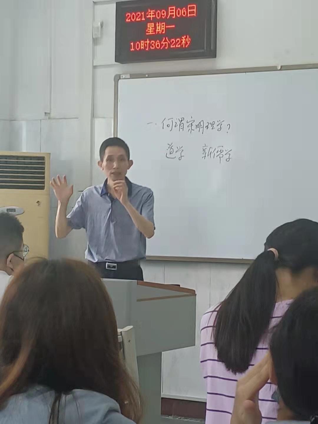 公司领导分别在教二307和教一315聆听了倪霞老师的《马克思主义哲学原理》和姚才刚老师的《中国哲学史》,对任课老师授课内容、员工听课过程、课堂整体效果等情况作了详细记录与评价。《马克思主义哲学原理》课上,倪霞老师讲述了马克思主义哲学在西方和东方的不同发展以及为什么要学习马克思主义哲学原理,还从历史进程的角度来介绍了马克思主义哲学的主题与特点,即将唯物主义与人的主体性结合起来,关注人的生活世界,为改变世界提供方法论。同学们也热烈地讨论了高中学习的与马克思主义哲学相关的内容和大学学习的不同之处。《中国哲学史课》上,姚才刚老师讲述了宋明理学的发展以及影响,以及“性与天道”是宋明理学兴起过程中理学家们普遍关注的主题,从怎样的角度研究相关问题会比较好处理;同时也向同学们阐释了儒家的价值原则和人伦规范的合理性内涵。