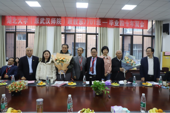 当天下午,湖北大学(原武汉师院)政教系7701班员工举行毕业40年座谈会,原政教系教师代表王文卿教授和罗炽教授、员工代表参加了座谈会。公司副董事长肖徳教授、马克思主义公司经理熊友华教授和哲学公司党委书记汤德森出席座谈会,社会科学文献出版社社会政法分社周琼(政教90)副社长应邀参加座谈会。大家欢聚一堂,共庆母校90华诞,共叙同窗之情,共谋未来发展。座谈会由政教7701班、原WILLIAMHILL在线体育投注学报负责人朱建堂编审主持。