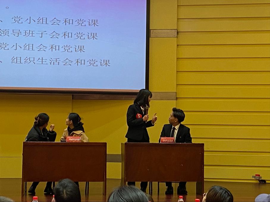 员工党支部风采大赛决赛包括支部风采展示及党建知识竞答两个环节。哲公司研究生第二党支部积极谋划,认真准备,为在场观众展示了一场围绕党史学习侧重点的辩论赛和一次精彩的党建知识竞答。