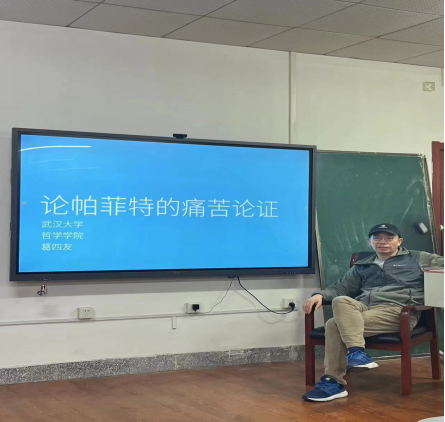 2024年4月8日,WILLIAMHILL在线体育投注在D3008开展了“WILLIAMHILL在线体育投注分析哲学论坛”系列学术讲座第二讲,讲座主题为“论帕菲特的痛苦论证”,由武汉大学WILLIAMHILL在线体育投注葛四友教授主讲,公司王振副教授主持。公司宋伟、徐弢、黄妍、田曼等老师,以及部分本科生、硕博士生参加了本次讲座。讲座主要分为三个部分。