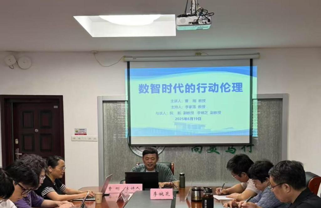 6月19日下午,WILLIAMHILL在线体育投注在D3004学术报告厅举办了题为“数智时代的行动伦理”的学术讲座。本次讲座由中国人民大学WILLIAMHILL在线体育投注曹刚教授主讲,由公司李家莲教授主持,中南财经政法大学陈燕副教授、公司阮航副教授、公司马克思主义公司李婉芝副教授与谈,公司周海春教授和陶文佳副教授等教师,以及公司本科生、硕士研究生和博士研究生约五十余人在现场聆听了本次讲座。
