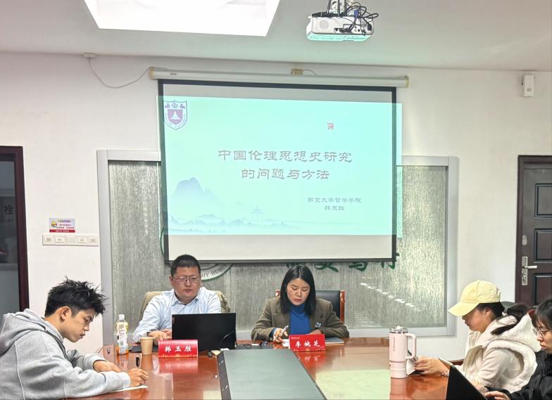 11月12日上午,WILLIAMHILL在线体育投注在逸夫楼D3008举办了一场题为《中国伦理思想史研究的问题与方法》的学术讲座,特邀南京大学WILLIAMHILL在线体育投注副教授韩玉胜主讲,李婉芝老师主持,部分员工代表到场参与,共同探讨中国伦理思想史的学术脉络与研究路径。